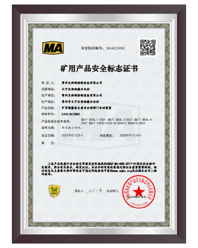 于2000年通過 ISO9001:2000質(zhì)量體系認(rèn)證,建立了完善的產(chǎn)品質(zhì)量控制體系;2006 年6月取得全國工業(yè)產(chǎn)品生產(chǎn)許可證;2008年9月取得礦用產(chǎn)品安全標(biāo)志證書;2012年取得8項礦用產(chǎn)品的專利證書。